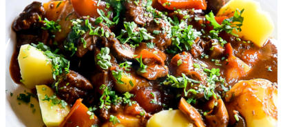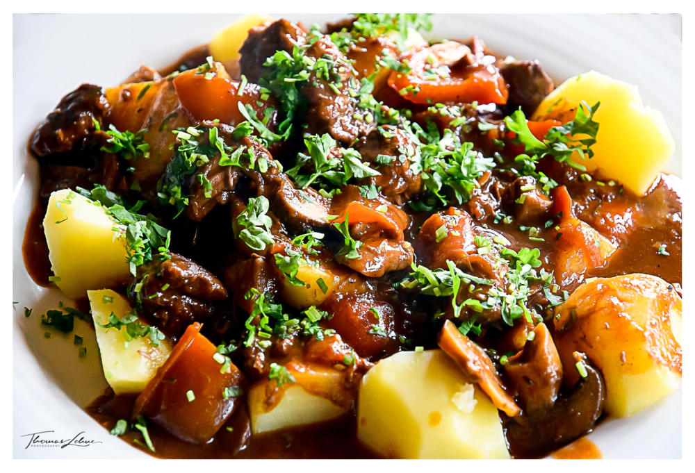 Kräftiges, feuriges Rindergulasch mit 13,5 Prozent Rotwein